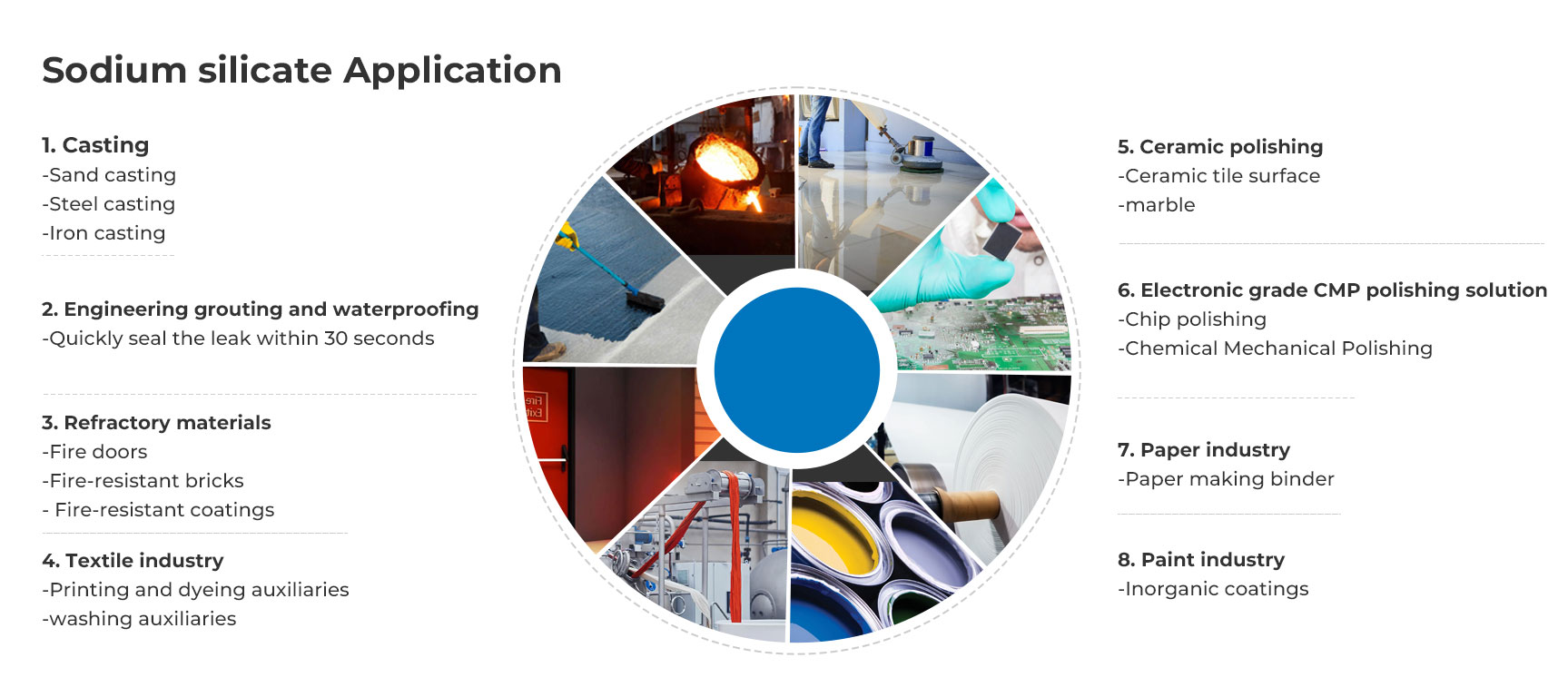 この耐食性の実現は、まずその独自の分子構造と化学結合方法に由来します。 Modulo(M):3.10-3.40 液体ケイ酸ナトリウムの分子鎖構造は緻密で安定しており、内部に形成されたネットワーク構造により化学的浸食に対して非常に強い耐性を示します。分子間の強力な架橋結合により、酸やアルカリ分子の構造への浸透と破壊が防止され、腐食性媒体の侵入を根本的に防ぎます。